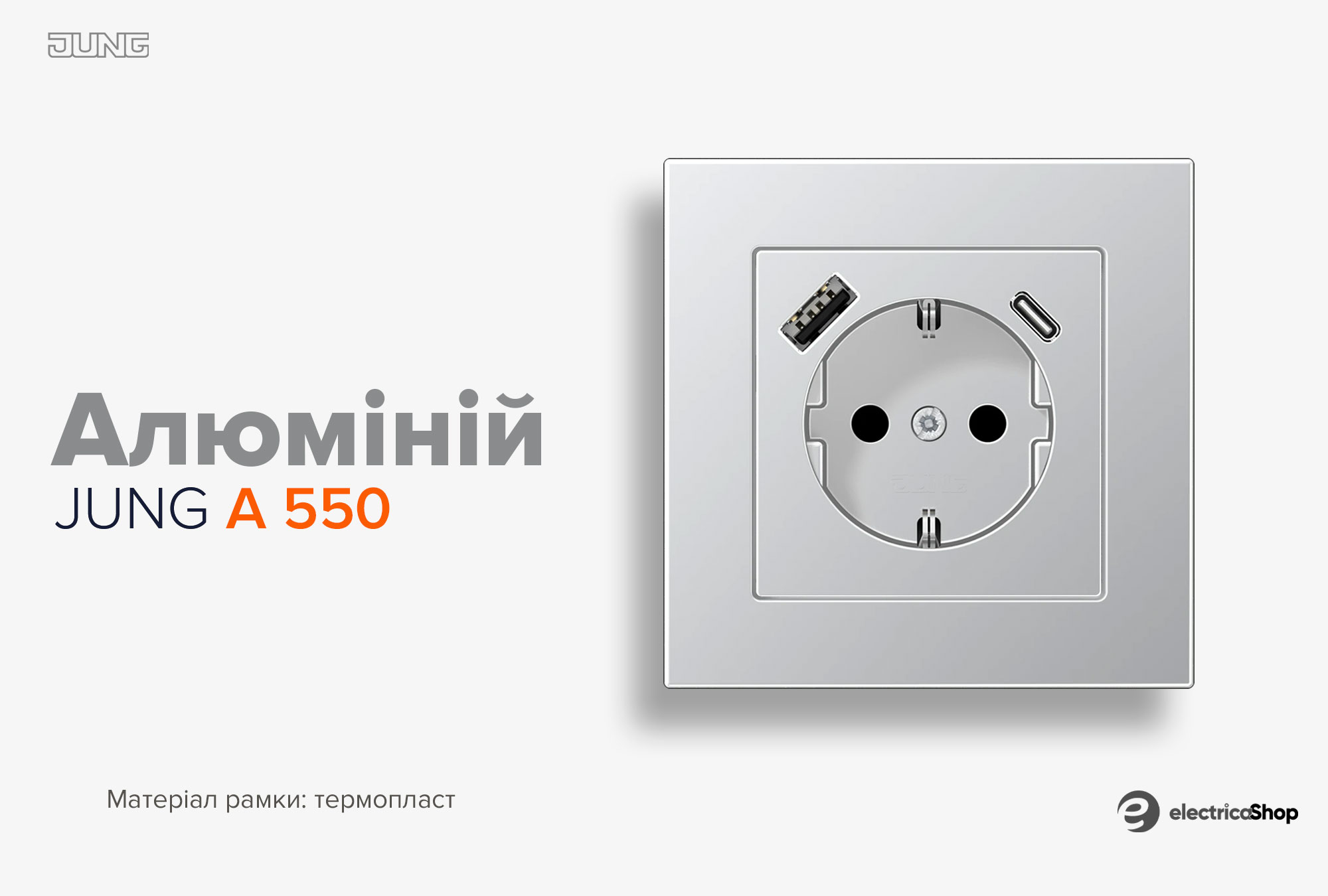 Розетка SCHUKO с USB тип C, JUNG A1520-18CAL, цвет алюминий