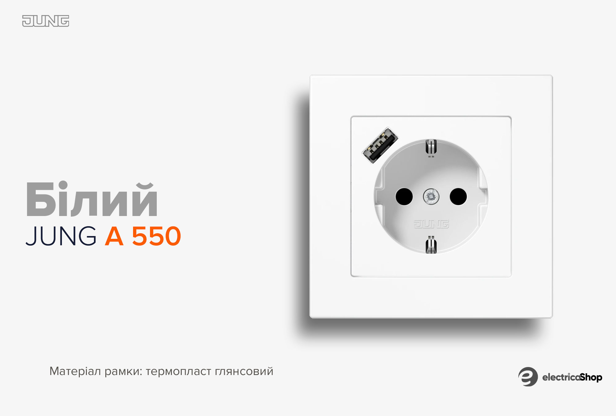 Розетка SCHUKO с USB тип A, JUNG A1520-18AWW, цвет белый