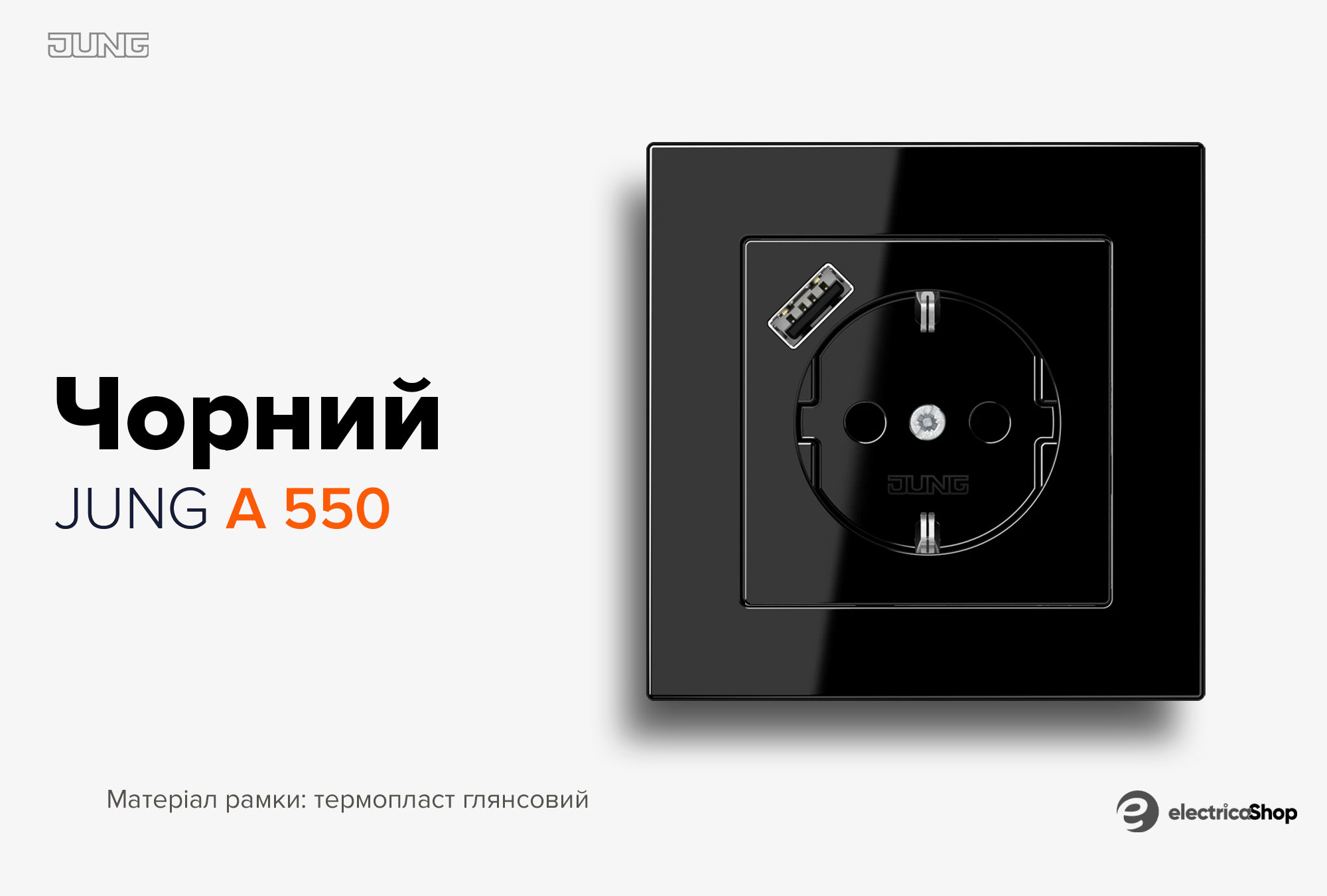Розетка SCHUKO с USB тип A, JUNG A1520-18ASW, цвет черный