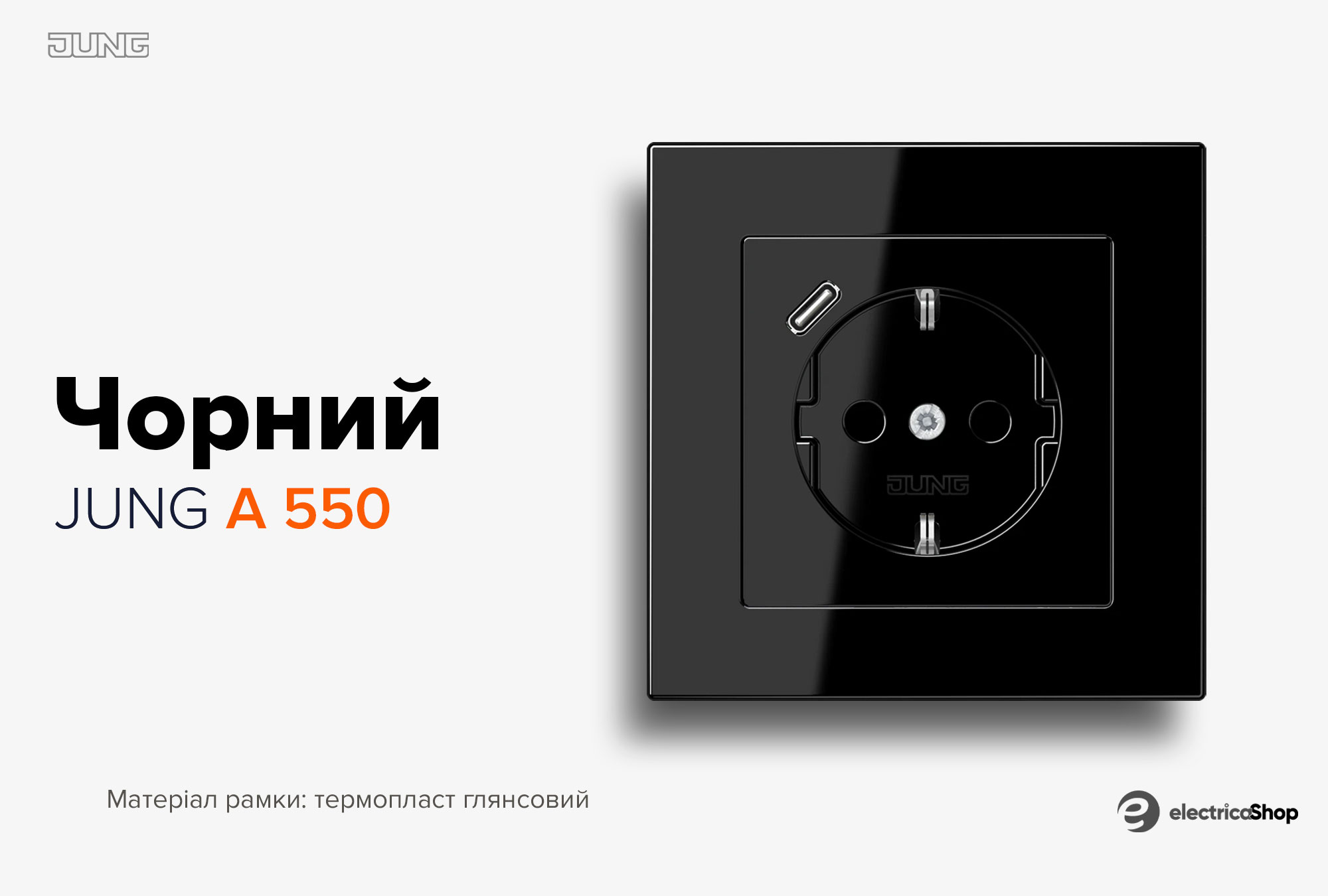 Розетка SСHUKO с USB тип C, JUNG A1520-18CSW, цвет черный