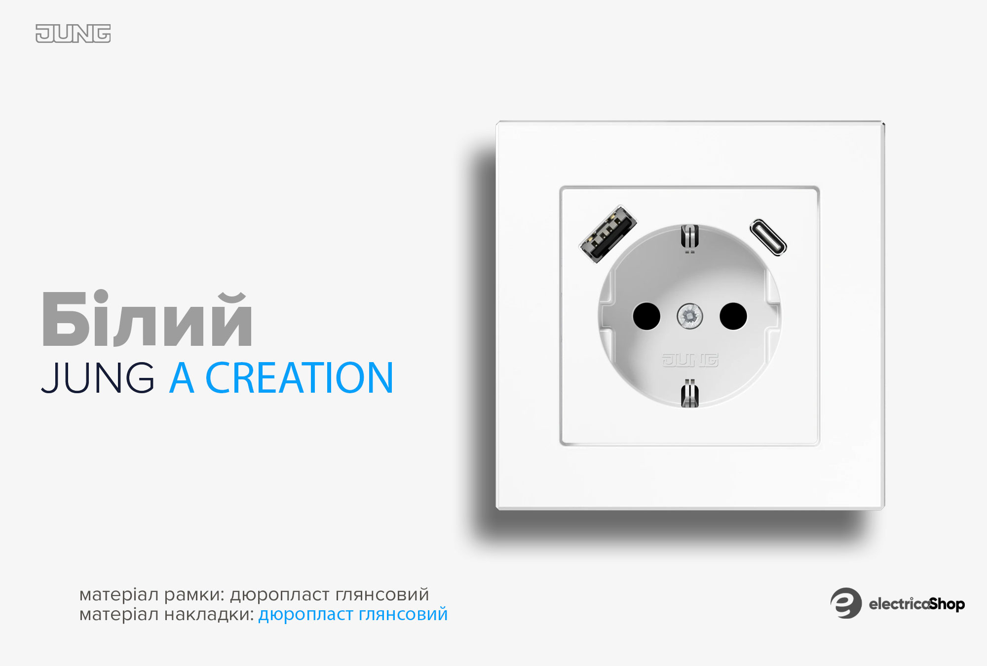 Розетка SCHUKO с USB тип AC, JUNG A1520-15CAWW, цвет белый