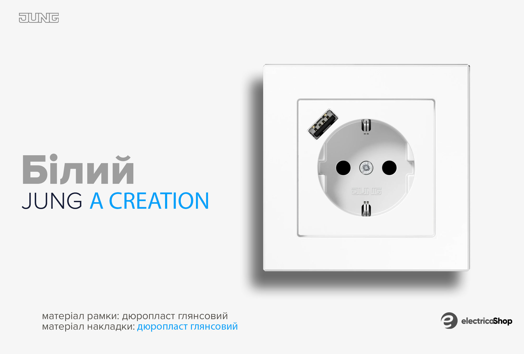 Розетка SCHUKO с USB тип A, JUNG A1520-18AWW, цвет белый