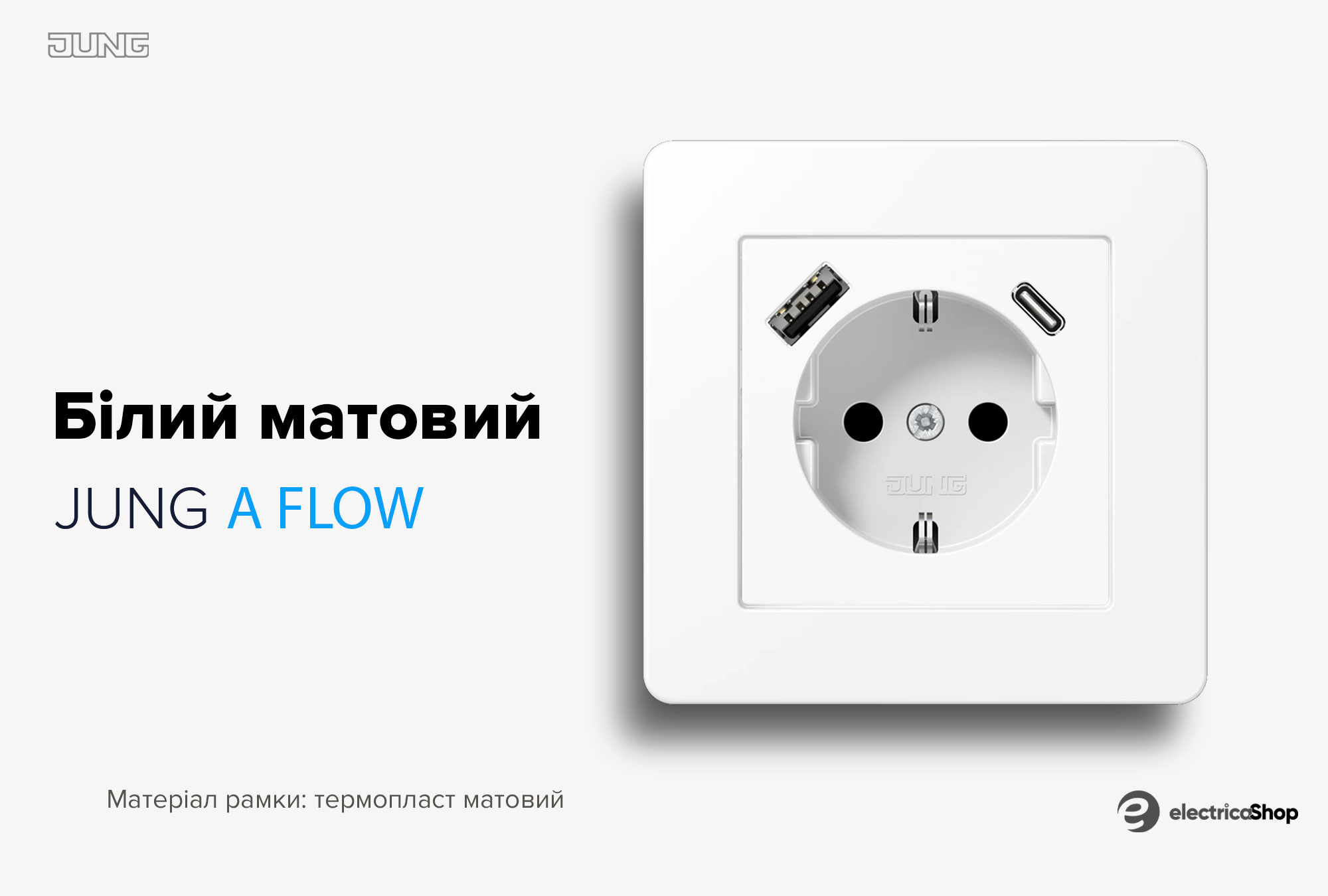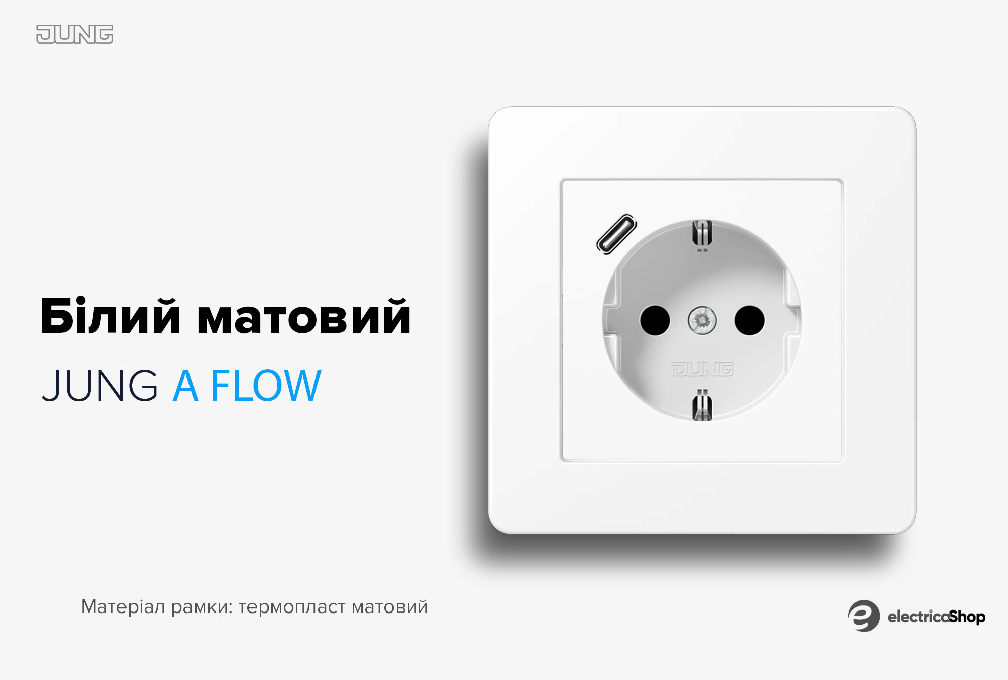 Розетка SСHUKO с USB тип C, JUNG A1520-18CWWM, цвет белоснежный матовый