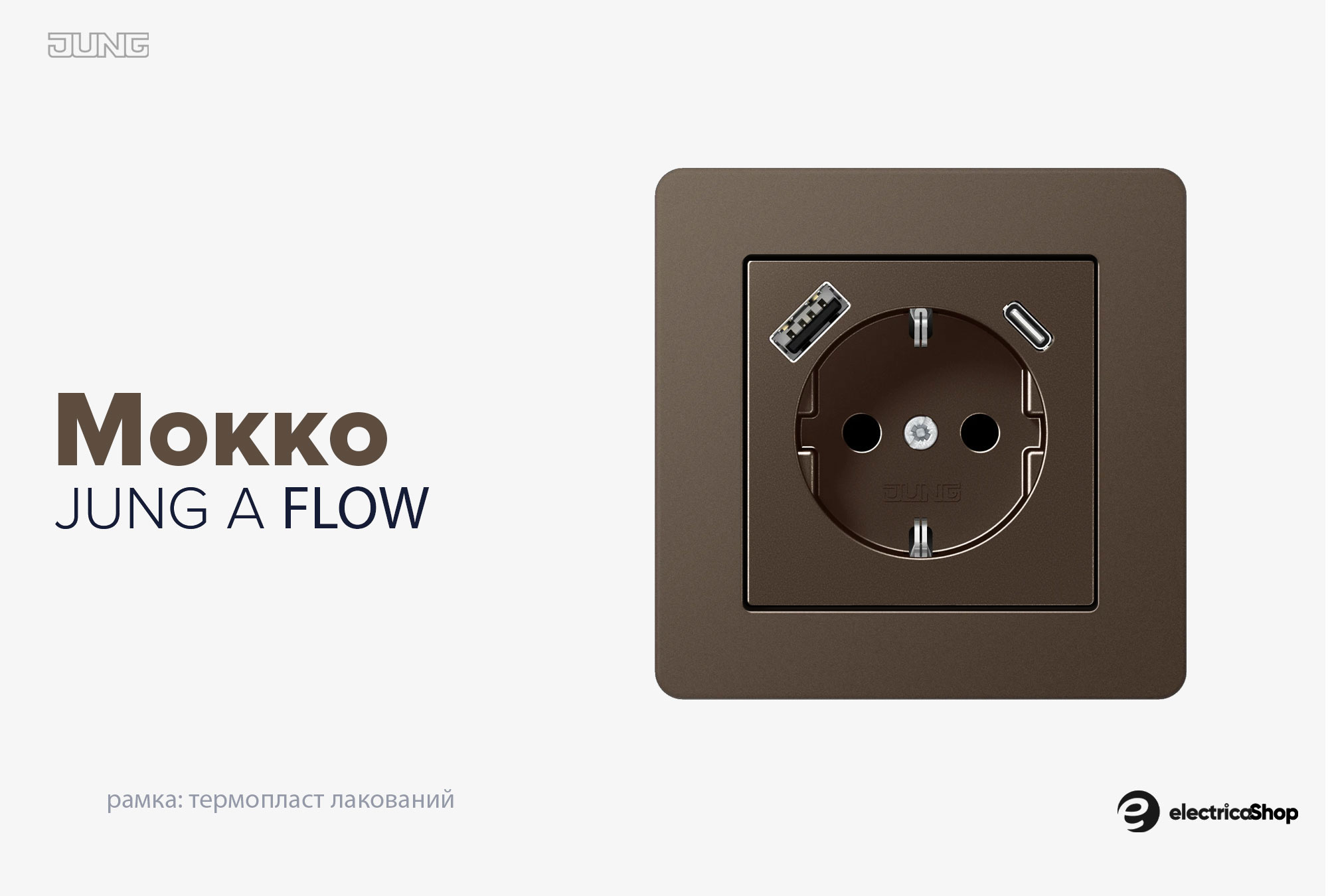 Розетка SСHUKO с USB тип C, JUNG A1520-18CMO, цвет мокко