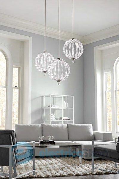 Люстра Elstead FE/OBERLIN/P/L Feiss прекрасно впишется в современный интерьер и создаст красивые световые акценты. Хрустальные бусины создают сферическую форму, подвеска подчеркивает общую композицию. При необходимости подвеску можно убрать. Имеет встроенный LED-модуль, цветовая температура – 3000K (теплый белый), свет рассеивается вверх и вниз. Высоту можно регулировать, min 1080 – max 2565 мм.