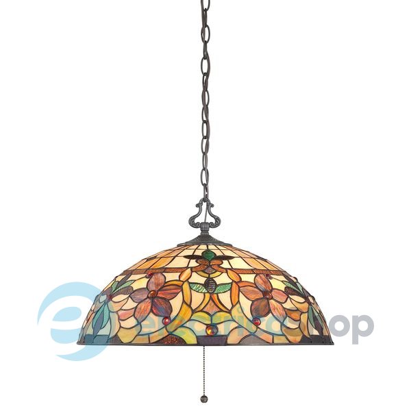Люстра Elstead QZ/KAMI/P Quoizel в стиле Тиффани, выполненная вручную, станет настоящим украшением для классического интерьера. Основа отделана винтажной бронзой, а теплая цветовая палитра (янтарь, имбирь, карамель, изумруд) из 360 кусочков художественного стекла создает гармоничный баланс света.