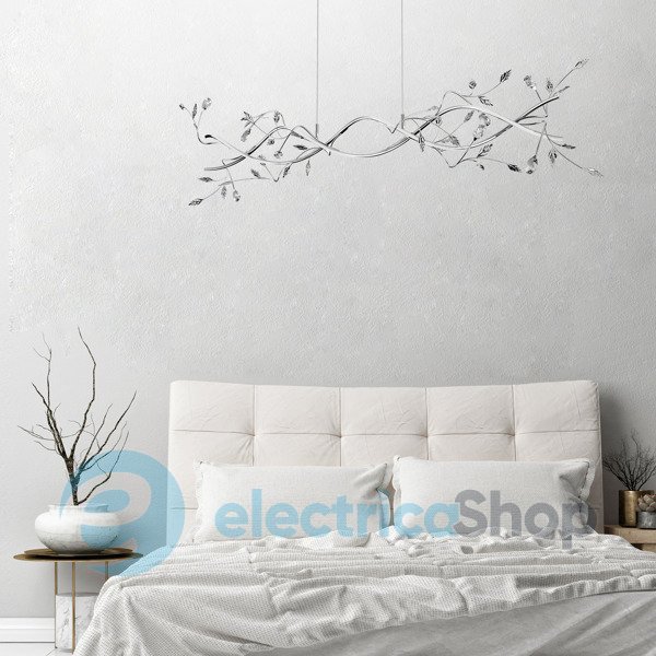 Люстра Zuma Belle PL170514-2 прекрасно впишется в современный интерьер и создаст красивые световые акценты. Изящный профиль светильника украшен декоративными листьями и хрустальными каплями. Отделка арматуры серебряная. Имеет встроенный LED-модуль.