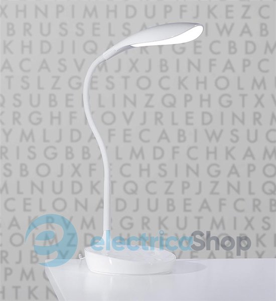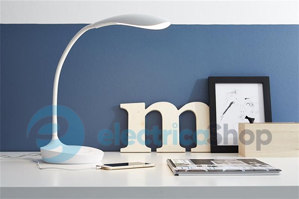 Настольная лампа MARKSLOJD Swan LED 106093 будет здорово смотреться в современных интерьерах. Изготовлена из прочного пластика. Яркость света можно изменять при помощи диммера. Встроенный led-модуль на 4,6W, цветовая температура – 3000K (теплый белый). Есть USB-разъем.