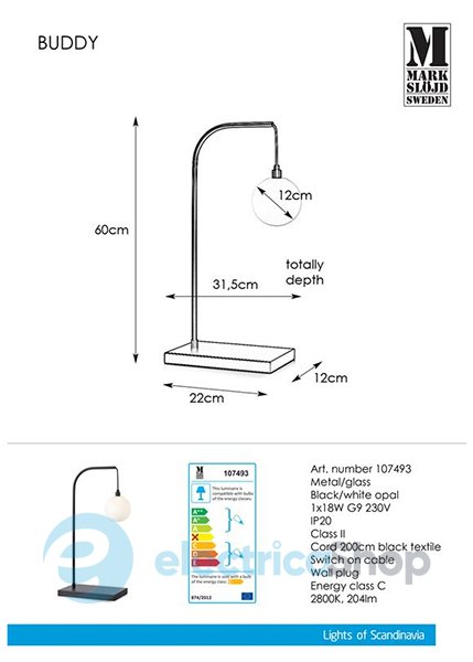 Настольная лампа MARKSLOJD Buddy black 107493 будет отлично смотреться в современных и лофт-интерьерах. Изготовлена из металла и опалового стекла. Выключатель на проводе, длина кабеля – 2 м.