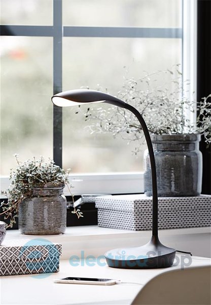 Настольная лампа MARKSLOJD Swan LED 106094 будет здорово смотреться в современных интерьерах. Изготовлена из прочного пластика. Яркость света можно изменять при помощи диммера. Встроенный led-модуль на 4,6W, цветовая температура – 3000K (теплый белый). Есть USB-разъем.