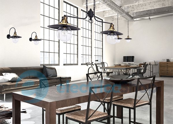 - Цвет плафонов: Античная латунь, Прозрачный, Черный