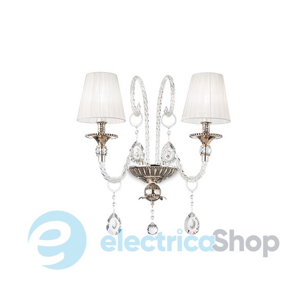 Бра Ideal Lux Romantik AP2 174914 подчеркнет индивидуальность вашего дома, будет отлично смотреться в классических интерьерах. Арматура изготовлена из металла и дутого стекла, абажуры тканевые. Декоративные элементы из хрусталя с фацетом.