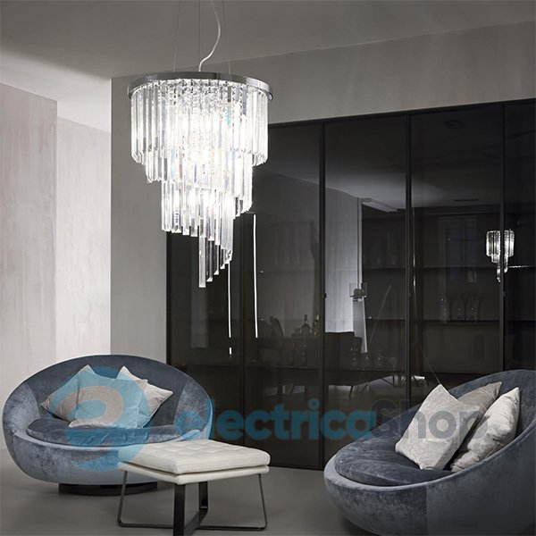 Люстра Ideal Lux Carlton SP12 166247 будет прекрасно смотреться в современных интерьерах. Изготовлена из металла и хрусталя с фацетом. Максимальная высота подвеса – 1610 мм.