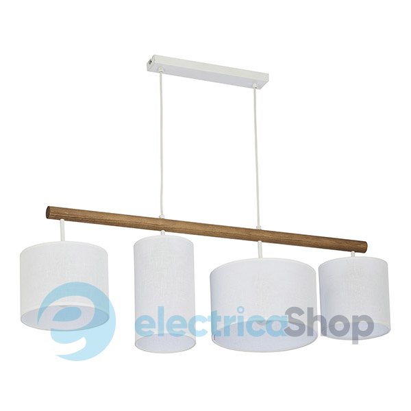 Люстра TK-Lighting DEVA WHITE 4106 станет стильным украшением для отелей, жилых помещений – спален и гостиных. Будет хорошо смотреться в современных пространствах благодаря простым формам, материалам и цветам. Основа изготовлена из дерева, металла и пластика, абажуры текстильные.