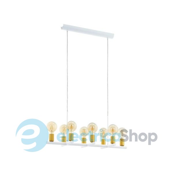 Подвесной светильник EGLO ADRI 2 SP8 97448 станет хорошим решением для больших помещений благодаря 8-ламповому каркасу. Выполнен в современном стиле, подойдет и под стиль лофт, хорошо сочетается с лампами Эдисона. Материал каркаса – сталь в белом цвете, патрон – золотистый металл.