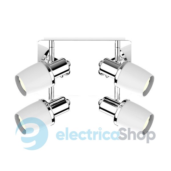 Светильник-спот Zuma POSO CK180610-4 будет отлично смотреться в современном интерьере. Изготовлен из металла с финишем под хром, плафоны белые.