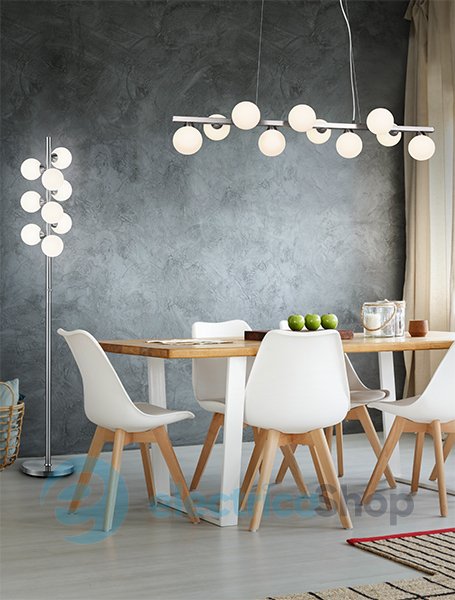 Люстра TRIO 307601007 ALICIA поможет украсить пространство, придать нотку эксклюзивности современному интерьеру за счет оригинального исполнения. Несмотря на размеры осветительного прибора, он не давит на помещение благодаря плафонам из белого стекла. Подходит для жилых и общественных пространств.