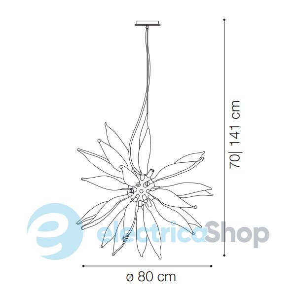Подвесной светильник Ideal Lux LEAVES SP12 112268 подчеркнет индивидуальность вашего дома, будет отлично смотреться в современных интерьерах. Арматура изготовлена из металла, декоративные элементы из дутого стекла ручной работы. Высота подвеса регулируется – 70-141 см.