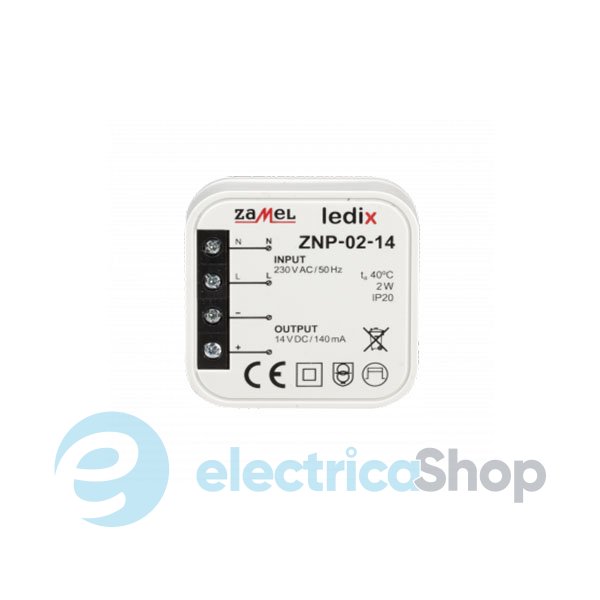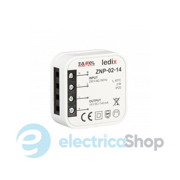 Блок питания ZNP-02-14 – это профессиональный импульсный источник питания с выходным напряжением 14V постоянного тока и мощностью 2W. Предназначен для работы с продуктами LEDIX с напряжением питания 14V DC. Монтаж в стандартный подрозетник ?=60 мм. Высокая эффективность и очень низкая мощность в режиме ожидания создают экономичное решение, рассчитанное на непрерывную работу.