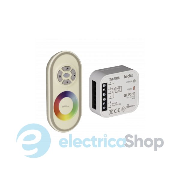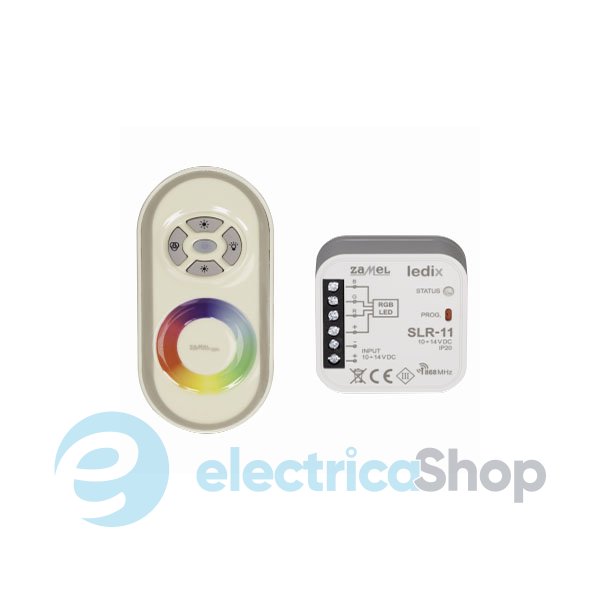 Комплект Ledix SLR-11p состоит из радиоуправляемого RGB-контроллера SLR-11 и сенсорного пульта управления P-260, предназначен для управления светодиодами LED RGB в схеме с общим "+" серии LEDIX. Небольшие габариты позволяют установить контроллер в стандартный подрозетник Ø=60 мм. По умолчанию контроллер снабжен 5 программами, также пользователь может выбрать 10 цветов свечения диодов, указанных в инструкции. При работе с пультом ДУ Р-260 на сенсорном поле можно выбирать любой цвет из гаммы (режим RAINBOW). Есть режимы плавной и резкой смены цветов.