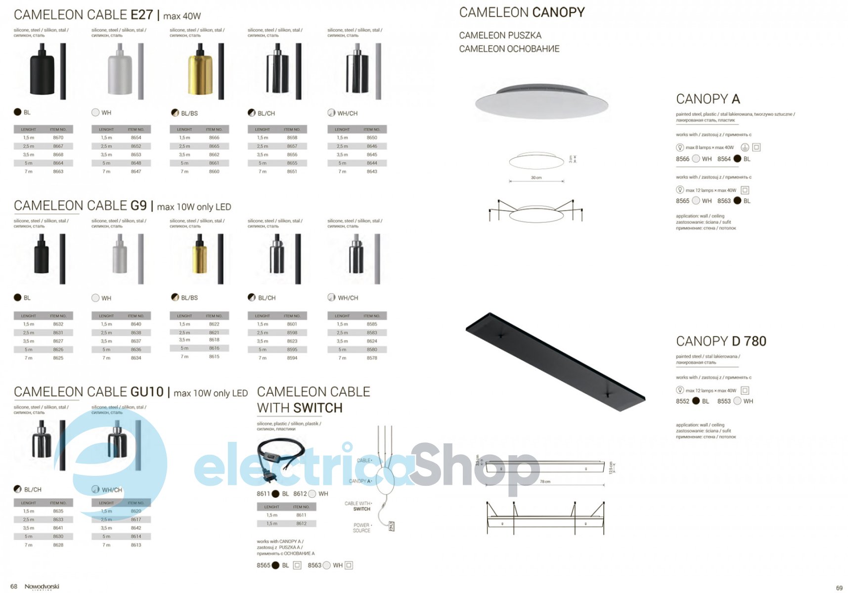 Кабель Nowodvorski CAMELEON CABLE E27 BL/CH 8655 является частью сборной системы Cameleon System. Подходит для всех светильников системы с патроном E27. Изготовлен из силикона, длина кабеля – 5 м.
