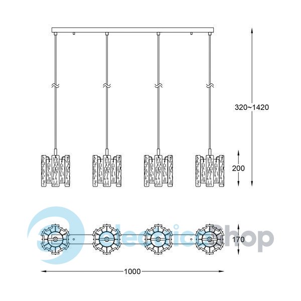- Цвет плафонов: Полупрозрачный, Прозрачный