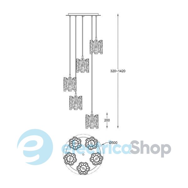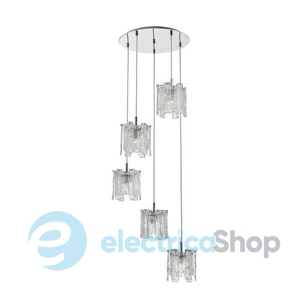 Подвесной светильник Zuma Line FROZE P0509-05D-B5AC станет отличным декоративным решением для помещений, оформленных в стиле модерн. Такой осветительный прибор будет изюминкой для современных дизайнерских интерьеров. Арматура изготовлена из металла, плафоны – из стеклянных пластин. Высота подвеса регулируется – 32-142 см.