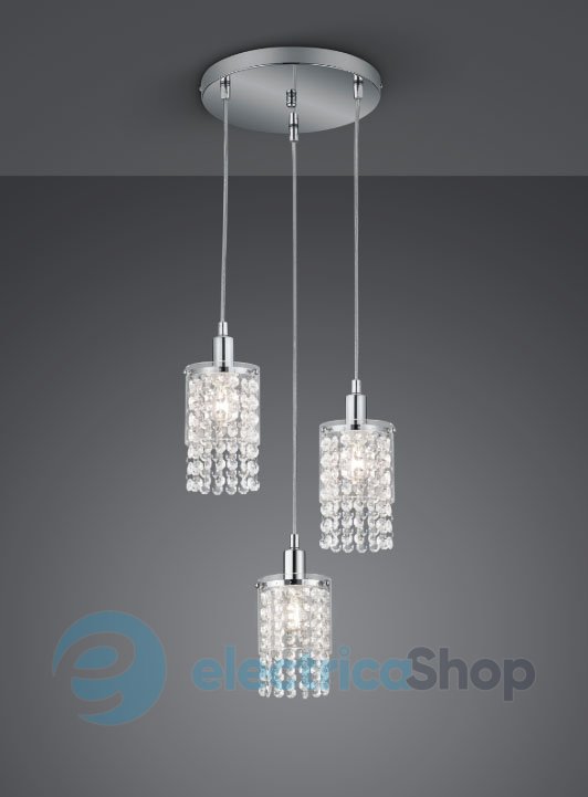 Подвесной светильник TRIO POSH R30763906 отлично впишется в современный интерьер и стилистику модерн, арт-деко. Высота подвеса – 1500 мм. Светильник изготовлен из металла и прозрачных стеклянных подвесок.