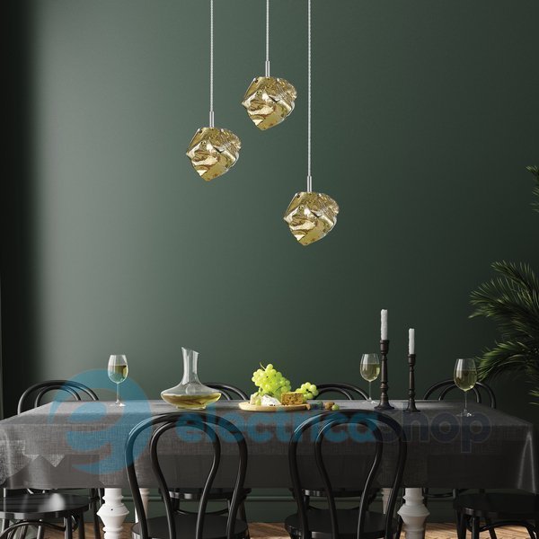 Люстра Zuma ROCK P0488-03A-B5HF будет отлично смотреться в современном интерьере. Изготовлена из металла и стекла, покрытие под золото. Высота подвеса регулируется от 60 до 152 см.