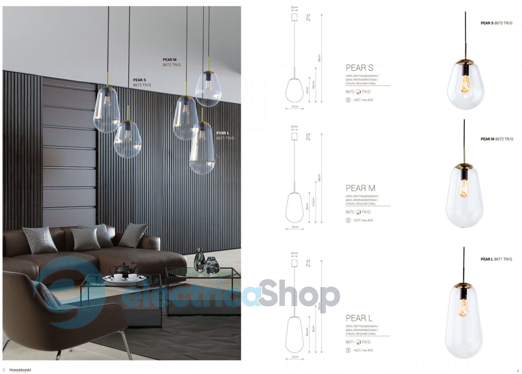 Подвесной светильник Nowodvorski PEAR S 8673 будет отлично в современных интерьерах и создаст красивые световые акценты в любом помещении. Изготовлен из стекла и латунной стали.