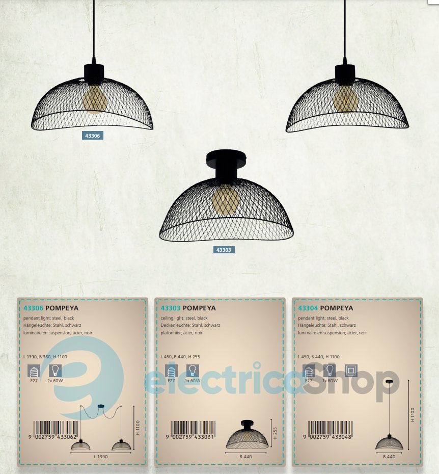 Люстра POMPEYA 43304 австрийского бренда EGLO будет отлично смотреться в современном интерьере, дополнит дизайн любого помещения. Изготовлена из стали, покрытие черного цвета.