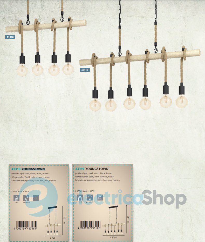 Люстра YOUNGSTOWN 43319 австрийского бренда EGLO станет настоящим украшением для современного интерьера. Изготовлена из дерева и металла. Прекрасно впишется в стиль лофт, украсит пространство над столом, кухонным островком или зоной отдыха, подойдет для кафе и баров.
