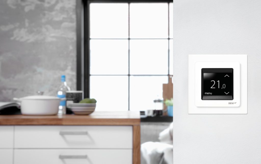 Терморегулятор Девирег Тач можно использовать для управления системой полного отопления комнаты или комфортным подогревом пола.Функции терморегулятора: