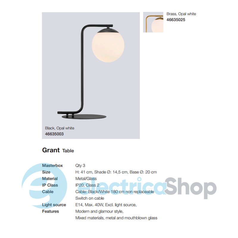 Настольная лампа Nordlux GRANT 46635025 будет отлично смотреться в современном интерьере, дополнит пространство гостиной и спальни. Прекрасно сочетается со стилистикой модерн. Длина кабеля – 1,8 м, выключатель на шнуре.