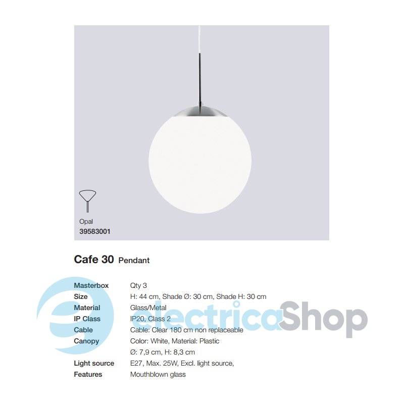 Подвесной светильник Nordlux CAFE 30 39583001 будет отлично смотреться в современном интерьере, дополнит пространство гостиной, спальни или кухни. Прекрасно сочетается со стилистикой модерн. Длина кабеля – 1,8 м.