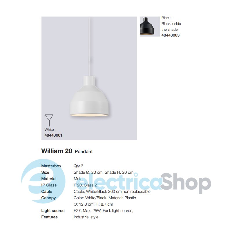Подвесной светильник Nordlux WILLIAM 20 48443003 будет отлично смотреться в современном интерьере, дополнит пространство над рабочим столом или обеденной зоной. Прекрасно сочетается со стилистикой минимализм и модерн. Длина кабеля – 2 м.
