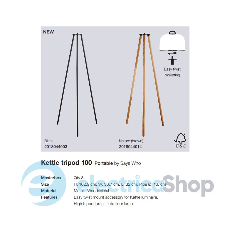 Тренога для уличного светильника KETTLE TRIPOD 100 2018044014 используется для создания торшера. Изготовлена из металла.