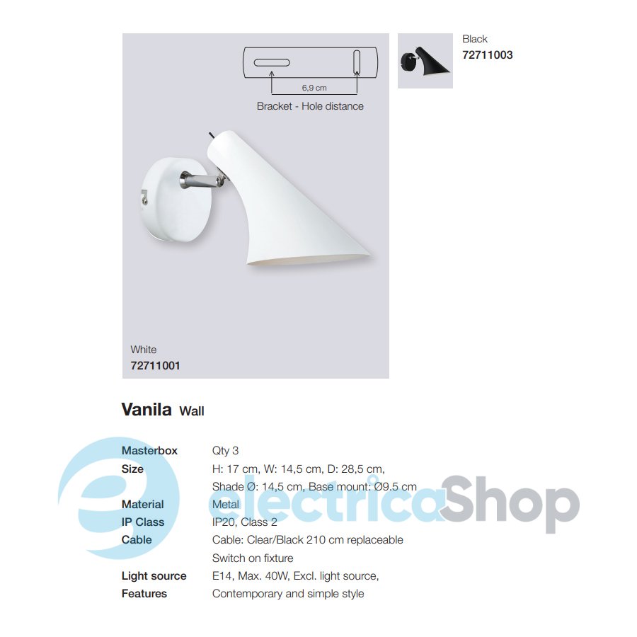 Бра Nordlux VANILA 72711001 будет отлично смотреться в современном интерьере, дополнит пространство. Прекрасно сочетается со стилистикой минимализм и модерн. Длина кабеля – 2,1 м, выключатель на корпусе.