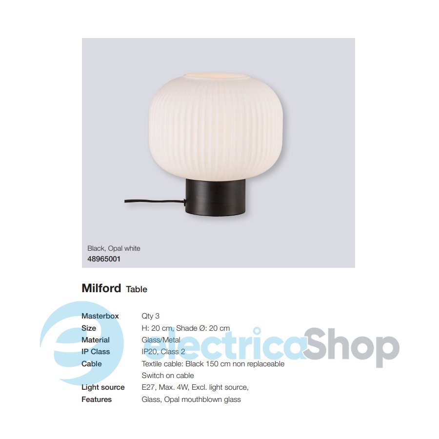 Настольная лампа Nordlux MILFORD 48965001 будет отлично смотреться в современном интерьере, дополнит пространство гостиной или спальни. Прекрасно сочетается со стилистикой модерн. Длина кабеля – 1,5 м, выключатель на кабеле.