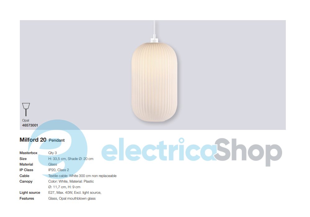 Подвесной светильник Nordlux MILFORD 20 46573001 будет отлично смотреться в современном интерьере, дополнит пространство гостиной или спальни. Прекрасно сочетается со стилистикой модерн. Длина кабеля – 3 м.