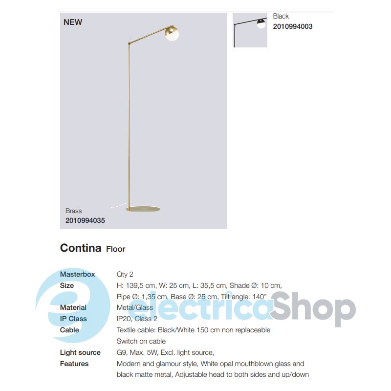 Торшер Nordlux CONTINA 2010994035 будет отлично смотреться в современном интерьере, дополнит пространство гостиной или спальни. Прекрасно сочетается со стилистикой модерн. Длина кабеля – 1,5 м, выключатель на шнуре. Благодаря подвижной ножке можно менять наклон плафона.
