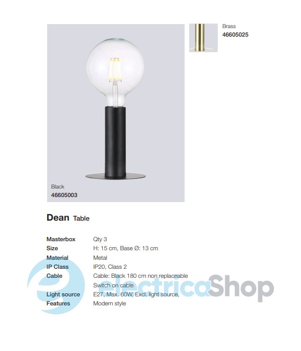 Настольная лампа Nordlux DEAN 46605025 будет отлично смотреться в современном интерьере, дополнит пространство гостиной или спальни. Прекрасно сочетается со стилистикой лофт. Лучше всего использовать с декоративными лампами Эдисона. Длина кабеля – 1,8 м, выключатель на шнуре.