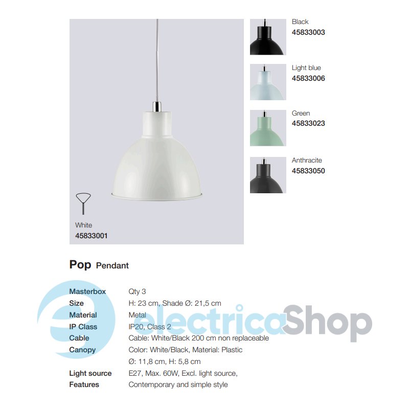 Подвесной светильник Nordlux POP 45833023 будет отлично смотреться в современном интерьере, дополнит пространство гостиной или спальни. Прекрасно сочетается со стилистикой модерн. Длина кабеля – 2 м.