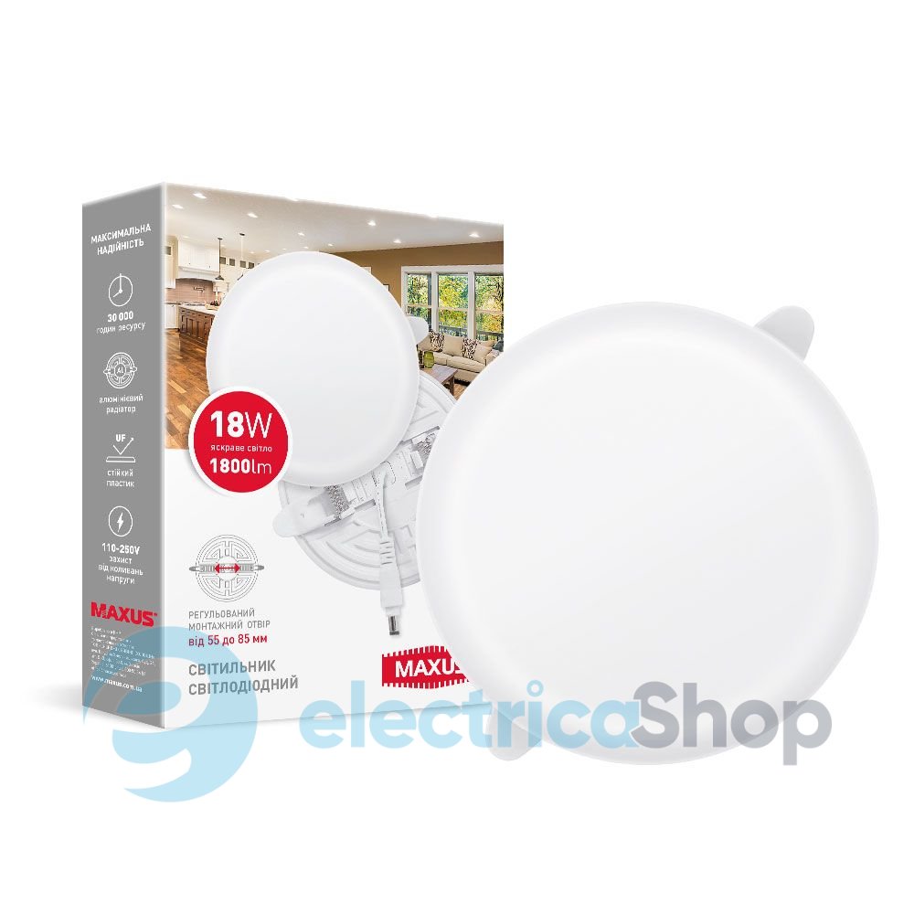 Светодиодный светильник MAXUS SP Adjustable 1-MSP-1841-CA имеет регулируемый диаметр крепления. Благодаря этому монтаж становится максимально простым и быстрым, подгонка врезного отверстия под конкретный размер светильника уже не требуется. Крепежные пружины подвижны.