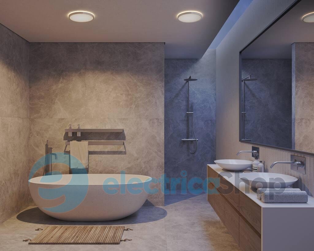 Потолочный светильник Nordlux OJA 29 IP54 BATH 3000K/4000K будет отлично смотреться в современном интерьере. Изготовлен из пластика, имеет встроенный LED-модуль на 14,5W. Есть функция памяти и режим ночника. В комплекте силиконовое кольцо цвета хром, которое снимается, таким образом светильник может быть также белого цвета.