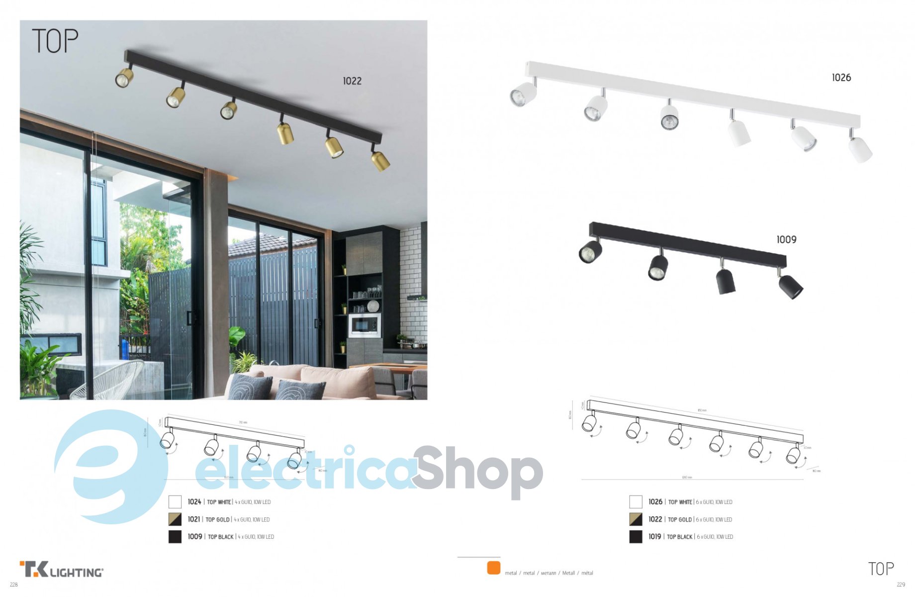 Светильник-спот TK-Lighting Top 1009 из новой коллекции производителя станет настоящим украшением для современного интерьера, подчеркнет его индивидуальность. Изготовлен из металла.