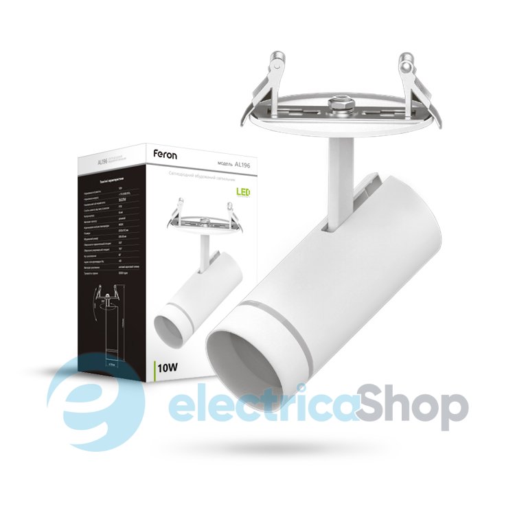 Точечный накладной светильник Feron AL196 10W белого цвета используется для освещения торговых центров и административных помещений, кафе и ресторанов, выставочных залов, а также для бытовых помещений и интерьерной подсветки. Применяется для основного и направленного освещения. Направление света легко регулируется.
