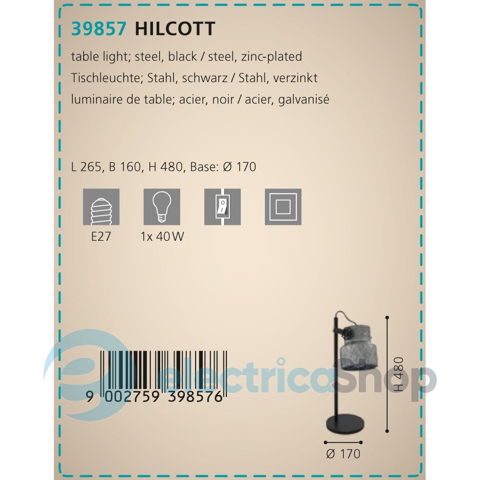 Настольная лампа Eglo HILCOTT 39857 будет отлично смотреться в современном интерьере, дополнит дизайн любого помещения. Изготовлена из оцинкованной стали.