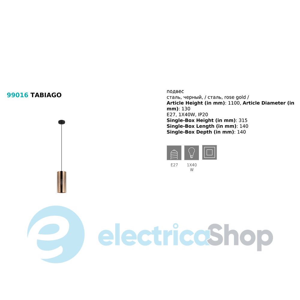 Подвесной светильник TABIAGO 99016 австрийского бренда Eglo™ станет настоящим украшением для современного интерьера. Основа и плафон изготовлены из стали.