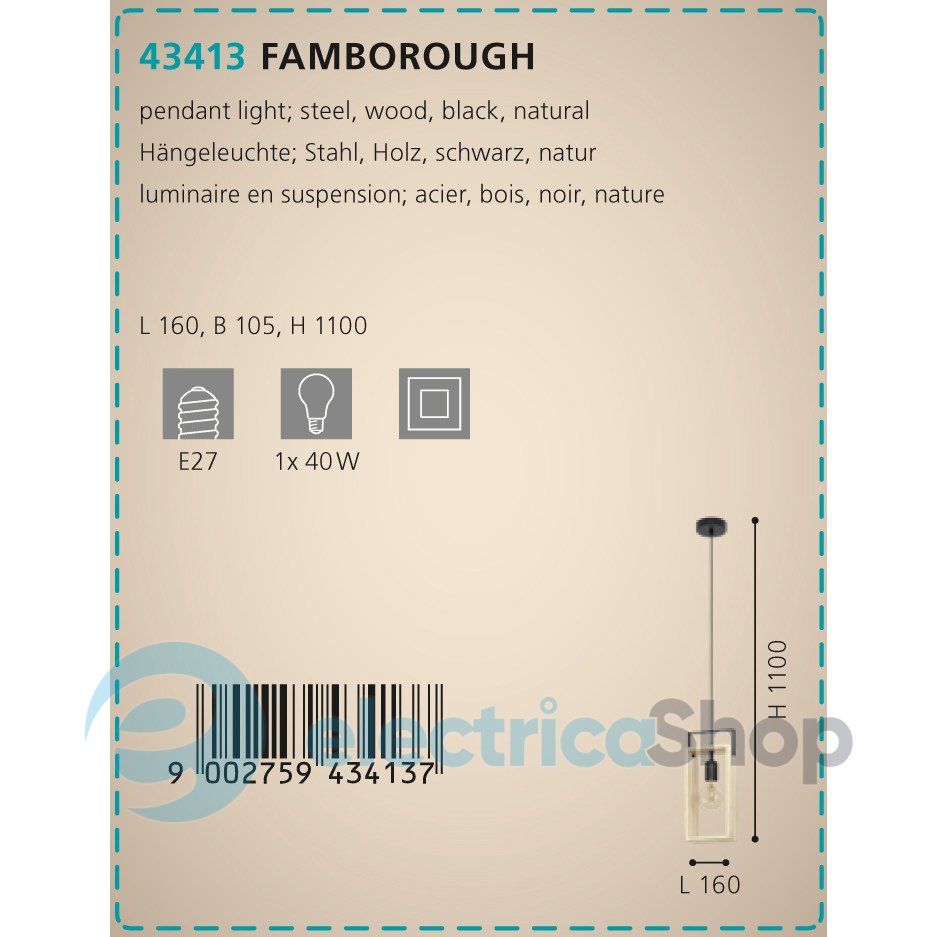 Подвесной светильник Eglo FAMBOROUGH 43413 будет отлично смотреться в современном интерьере, дополнит дизайн любого помещения. Изготовлен из стали и дерева, хорошо сочетается с декоративными лампами Эдисона.